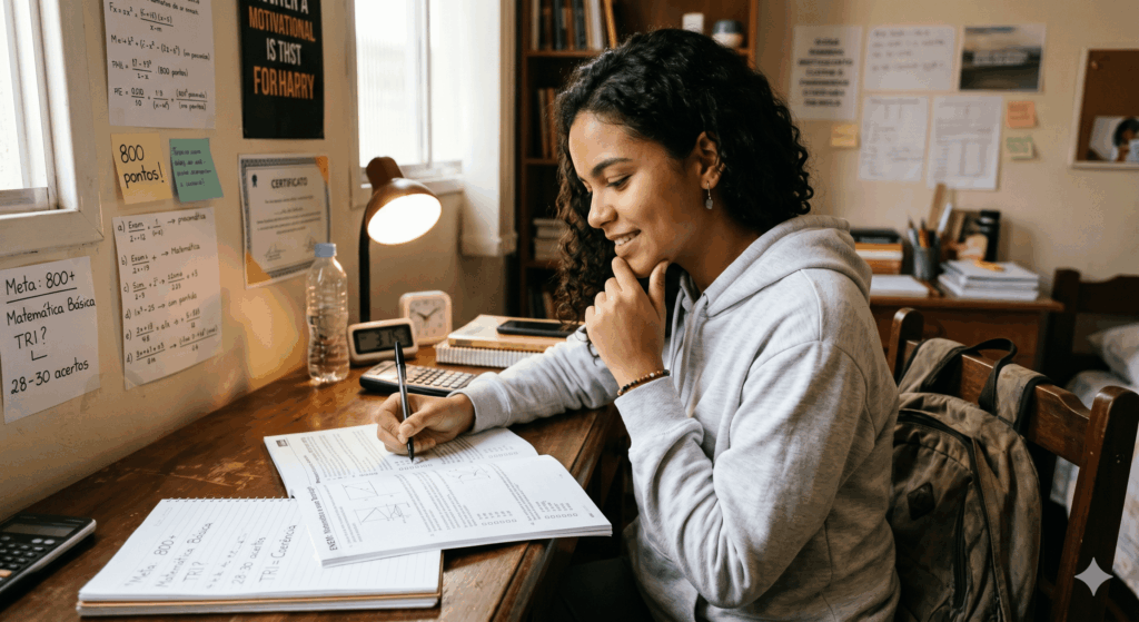 - Simulados com TRI: utilize simuladores que consideram o peso das questões, não apenas a contagem bruta;