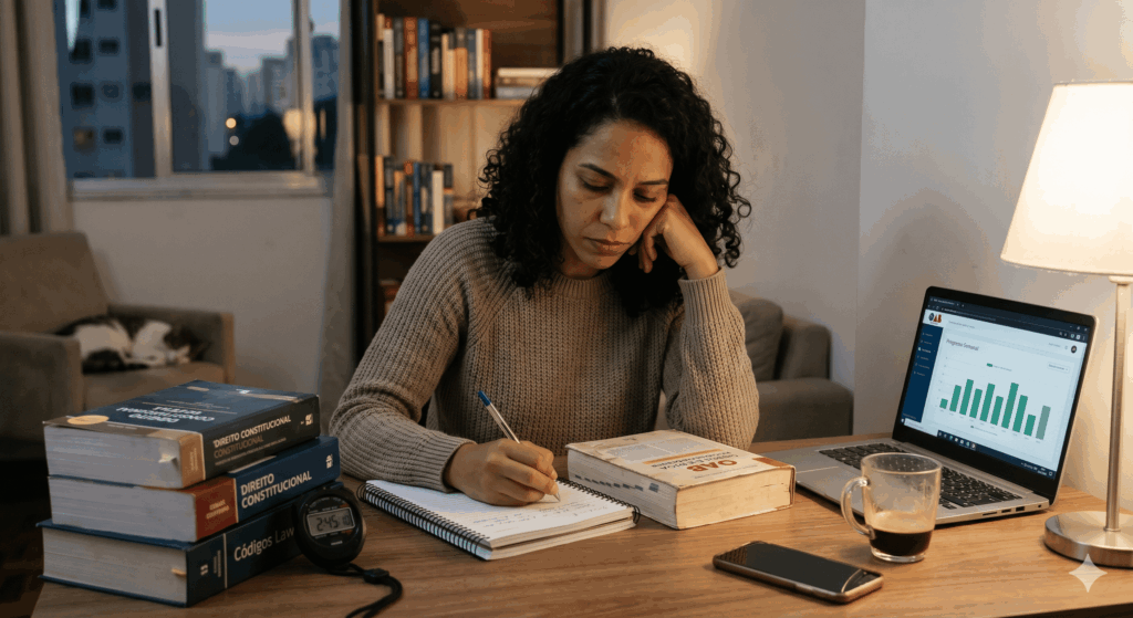 Para a maioria dos editais de nível médio, OAB e até vestibulares concorridos, 3 horas diárias de estudo ativo somam 21 horas semanais. Isso é mais do que suficiente para cobrir o conteúdo programático com profundidade, desde que haja constância. O segredo não é a carga horária bruta, mas o que você faz com cada minuto.