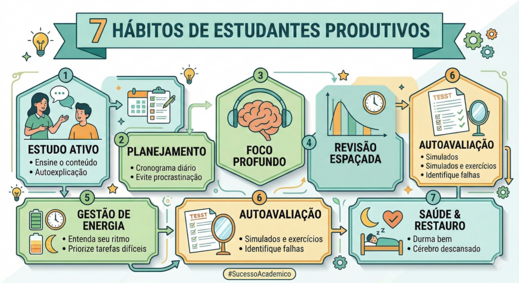 Aprender hábitos de estudantes produtivos é o divisor de águas entre quem apenas “passa o tempo com o livro” e quem realmente domina a matéria e alcança o sucesso acadêmico.
