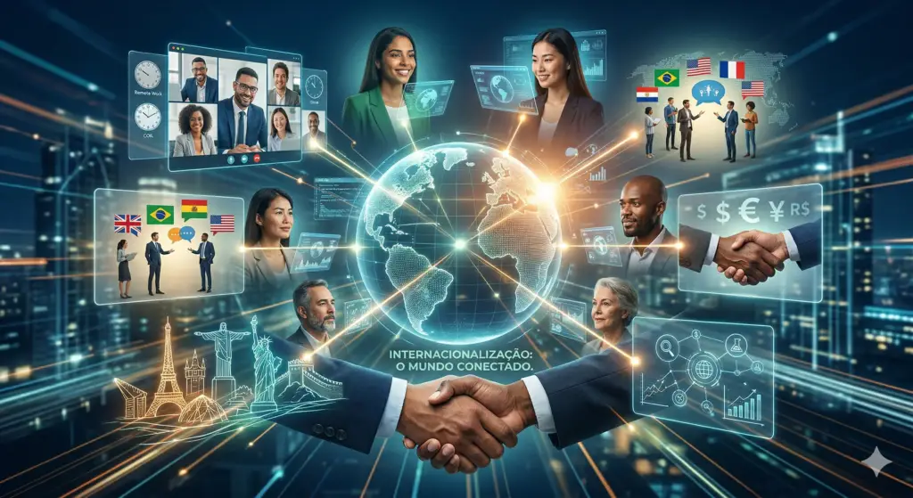 - Impacto financeiro e salarial: Para empresas, significa o acesso a moedas mais fortes e mercados consumidores vastos. Para profissionais, a internacionalização de competências pode representar um salto salarial considerável ao acessar vagas em multinacionais ou projetos remotos globais;