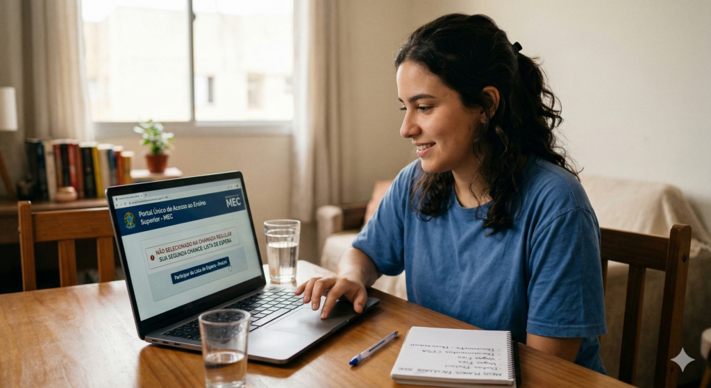 Deve aguardar o prazo oficial e clicar no botão “Participar da Lista de Espera” no site do MEC. Se não fizer esse passo, você estará fora da disputa pelas vagas que sobrarem.